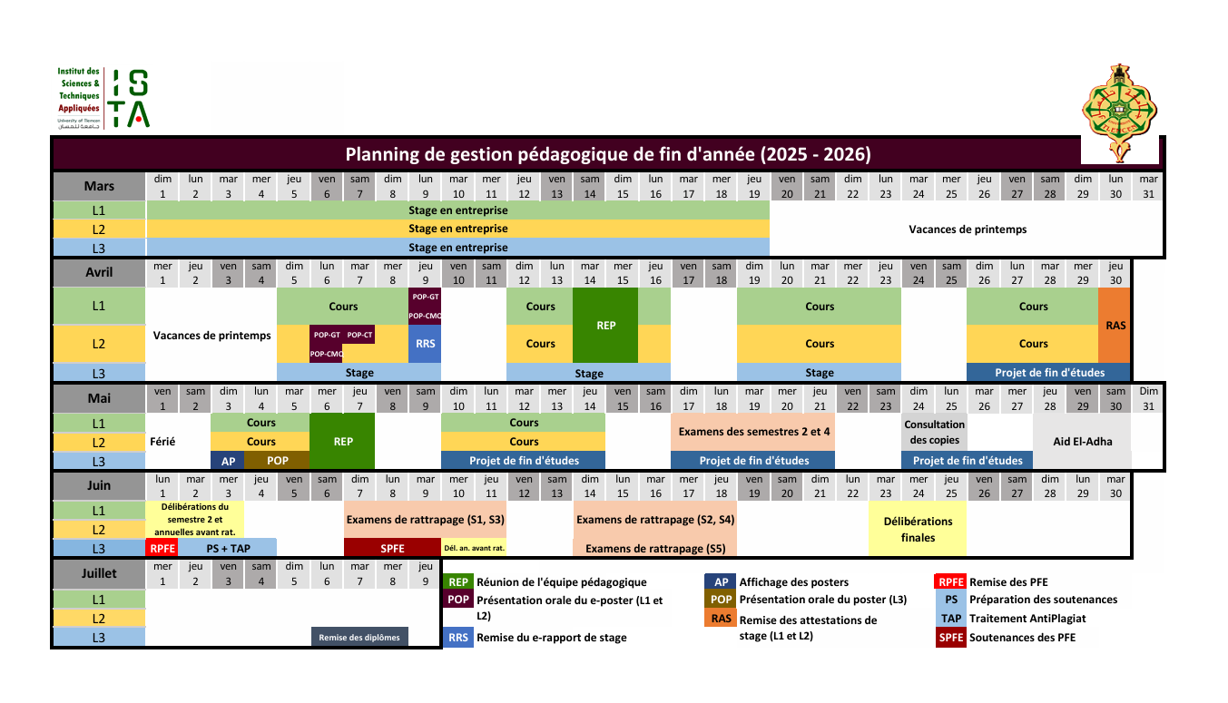 Planning des activités pédagogiques