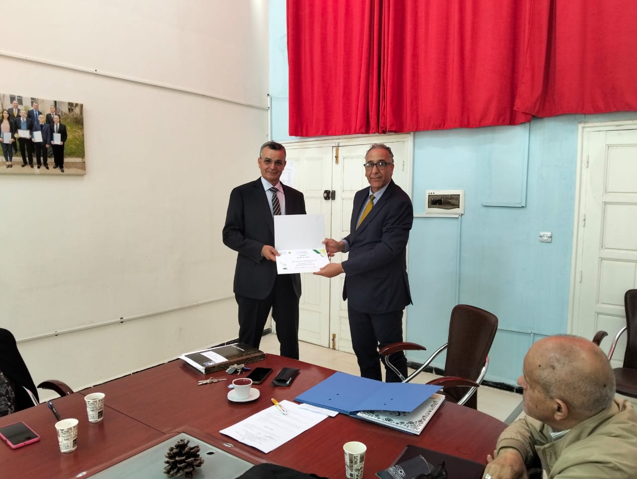 Le dimanche 19 avril à 14h, il a été procédé à l’installation du nouveau Président du Conseil scientifique de l’Institut, le Professeur BARKA Mohammed Salih, qui succède au Professeur MOUSSA BOUDJEMAA BOUMEDINE, ayant assuré cette responsabilité durant deux mandats. À cette occasion, l’ensemble de la communauté de l’Institut tient à exprimer sa profonde reconnaissance au Professeur MOUSSA BOUDJEMAA BOUMEDINE pour son engagement, son dévouement et le travail accompli tout au long de ses deux mandats, et adresse également ses sincères félicitations au Professeur BARKA Mohammed Salih pour sa nomination, en lui souhaitant plein succès et bon courage dans l’exercice de ses nouvelles fonctions.